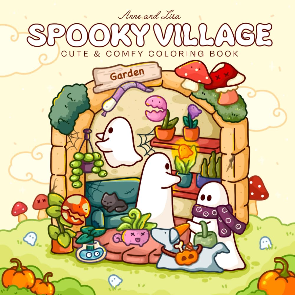 Spooky Village: Cute & Simple Coloring Book for Adults and Teens Featuring Adorable Characters, Creepy Creatures and Cozy Hygge Scenes