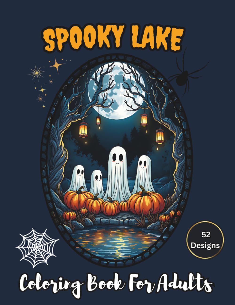 Spooky Lake Coloring Book For Adults: 52 Halloween Fantasy Designs on Black Background for Stress Relief and Relaxation