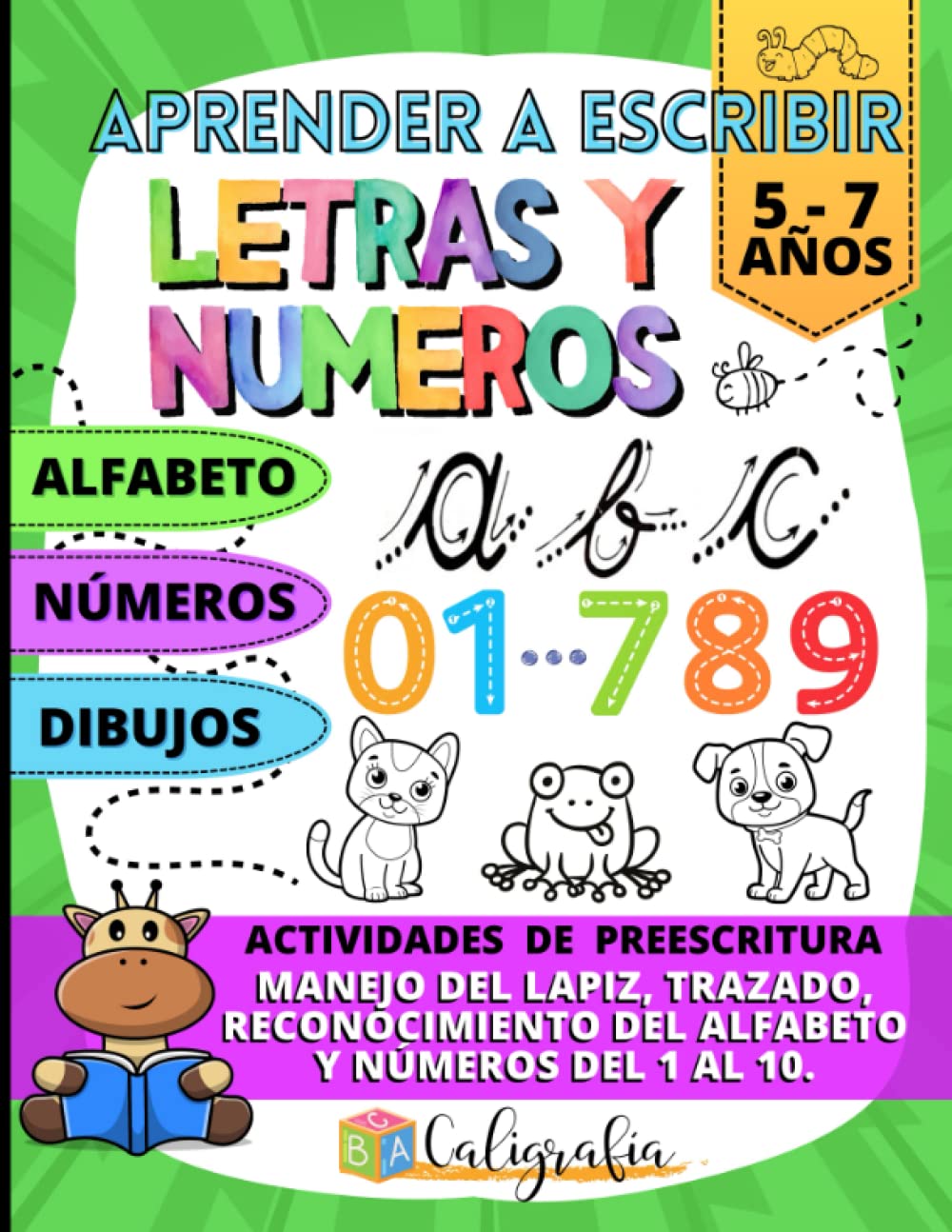 Aprender a escribir letras y numeros para niños de 5 6 7 años con actividades de preescritura: Cuaderno de caligrafia infantil facil y dive