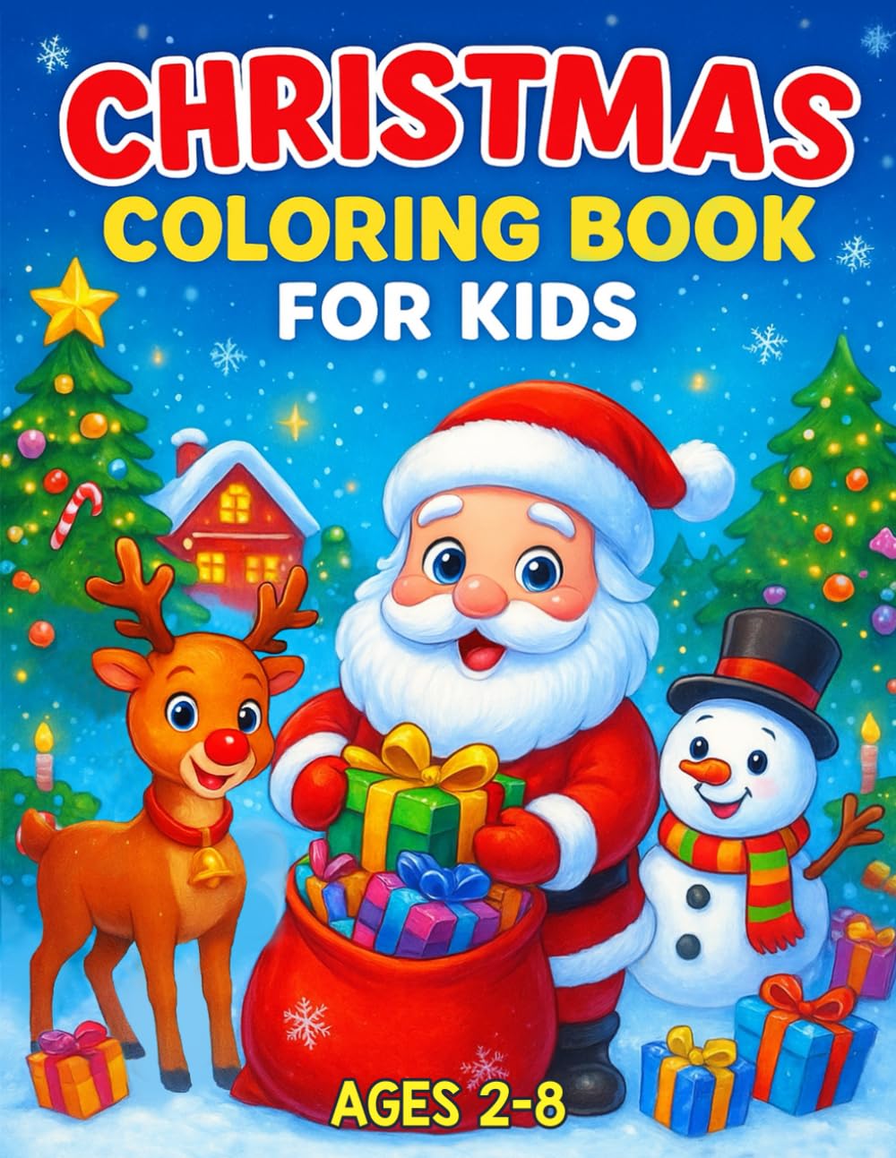Christmas Coloring Book for Kids Ages 2-8: Fun, Easy and Cute Holiday Designs with Santa, Reindeer, Snowmen, Elves, Gifts and More!