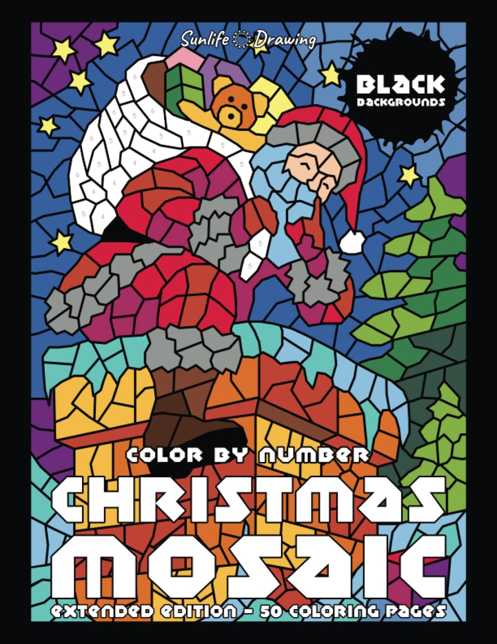 CHRISTMAS MOSAIC Color By Number (Black Backgrounds) (Extended Edition - 50 Coloring Pages)