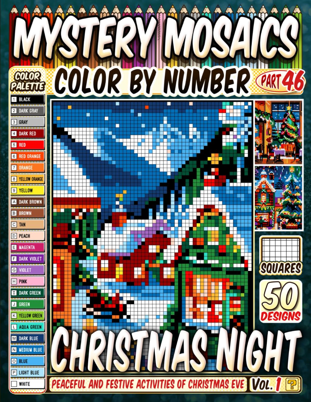 Christmas Night Mystery Mosaic Color by Number: 50 Peaceful and Festive Activities of Christmas Eve in Pixel Style (Christmas Coloring)