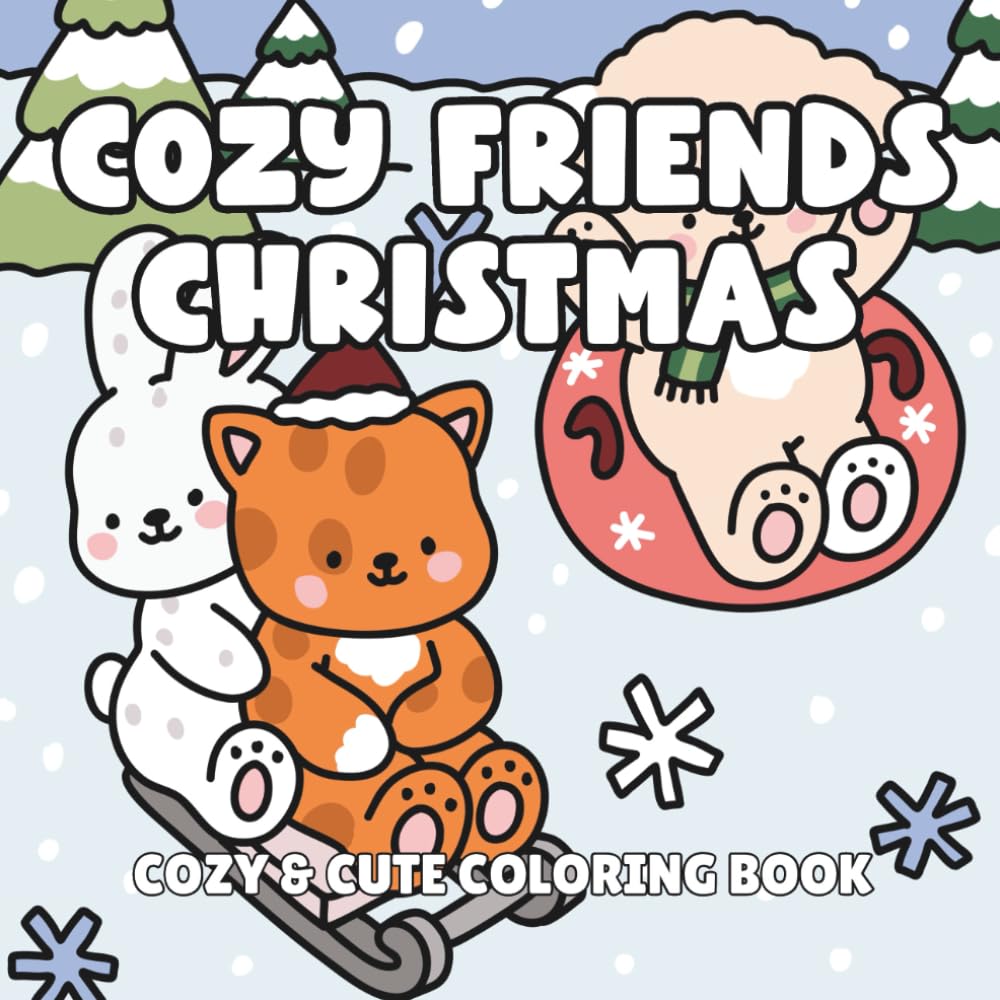 Cozy Friends Christmas Cozy & Cute Coloring Book: Coloring Book For Adults & Teens Featuring Comfy Holiday Scenes