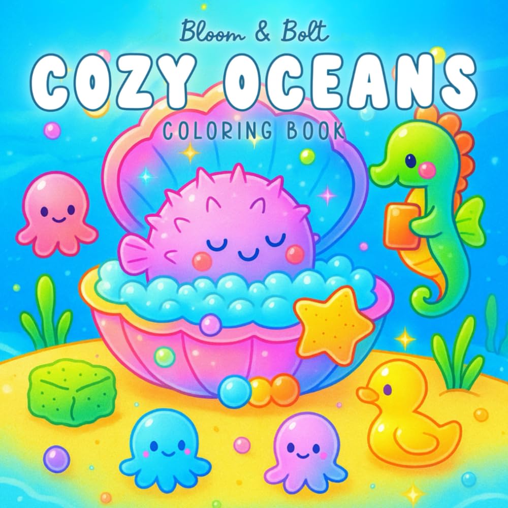 Cozy Oceans Coloring Book: Bold & Easy Coloring Book Featuring 40 Hand-Drawn Underwater Scenes Filled with Sea Life, Ocean Vibes, and Whims