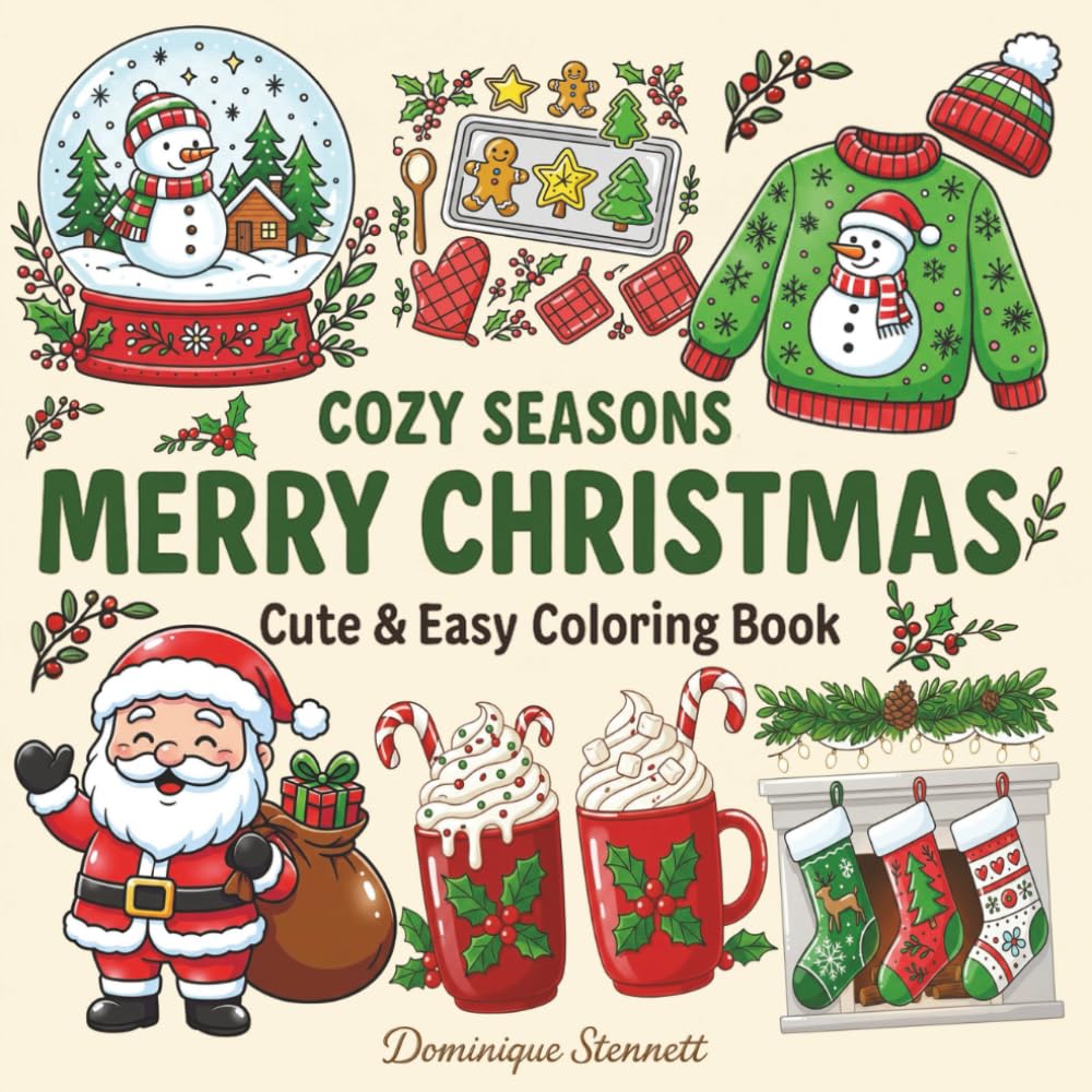 Cozy Seasons: Merry Christmas: Cute and Easy Coloring Book for Adults, Teens with Simple and Relaxing Holiday Designs