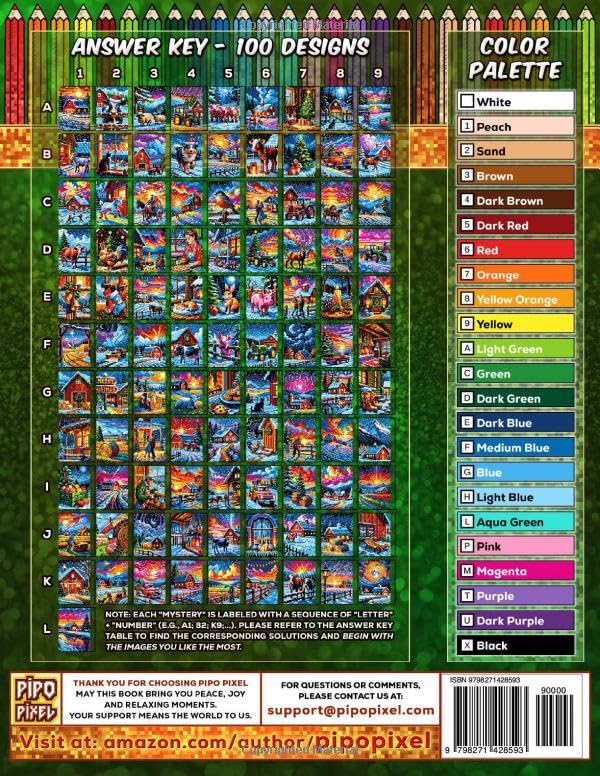 Experience the charm of a cozy countryside Christmas through 100 beautifully crafted pixel art designs. Each page reveals a delightful surprise—snowy barns, glowing lanterns, gentle farm animals, and peaceful winter nights filled with holiday warmth. Whether you’re relaxing by the fireplace or enjoying a quiet evening, this book will bring comfort, creativity, and festive joy to your coloring moments.