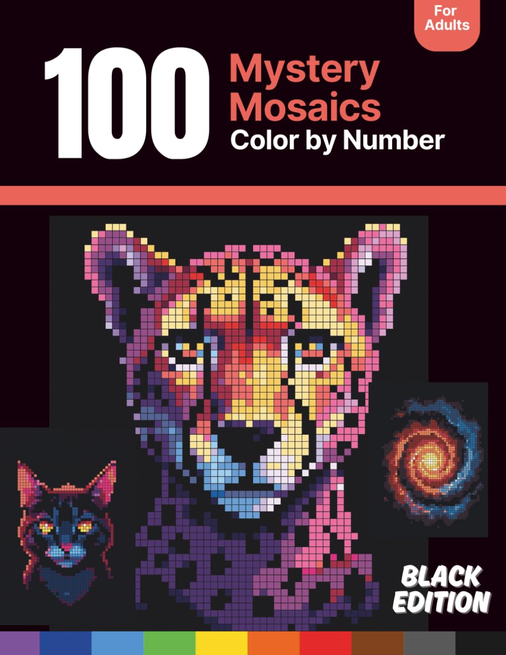 100 Mystery Mosaics Color By Numbers For Adults: Large Print Unique Pixel Art Coloring Book | Black Edition