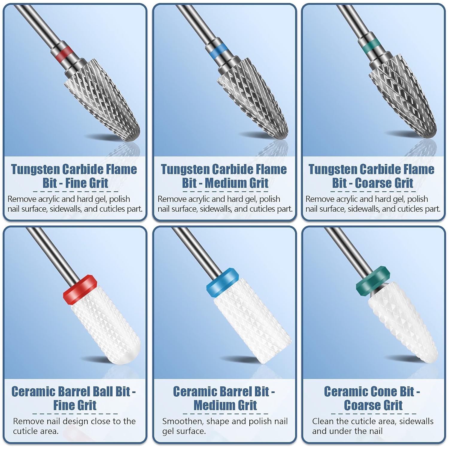 13PC Nail Drill Bits Set, Drill Bits for Nails, 3pcs Tungsten Carbide Drill Bits+ 3pcs Ceramic Efile Nail Drill Bits