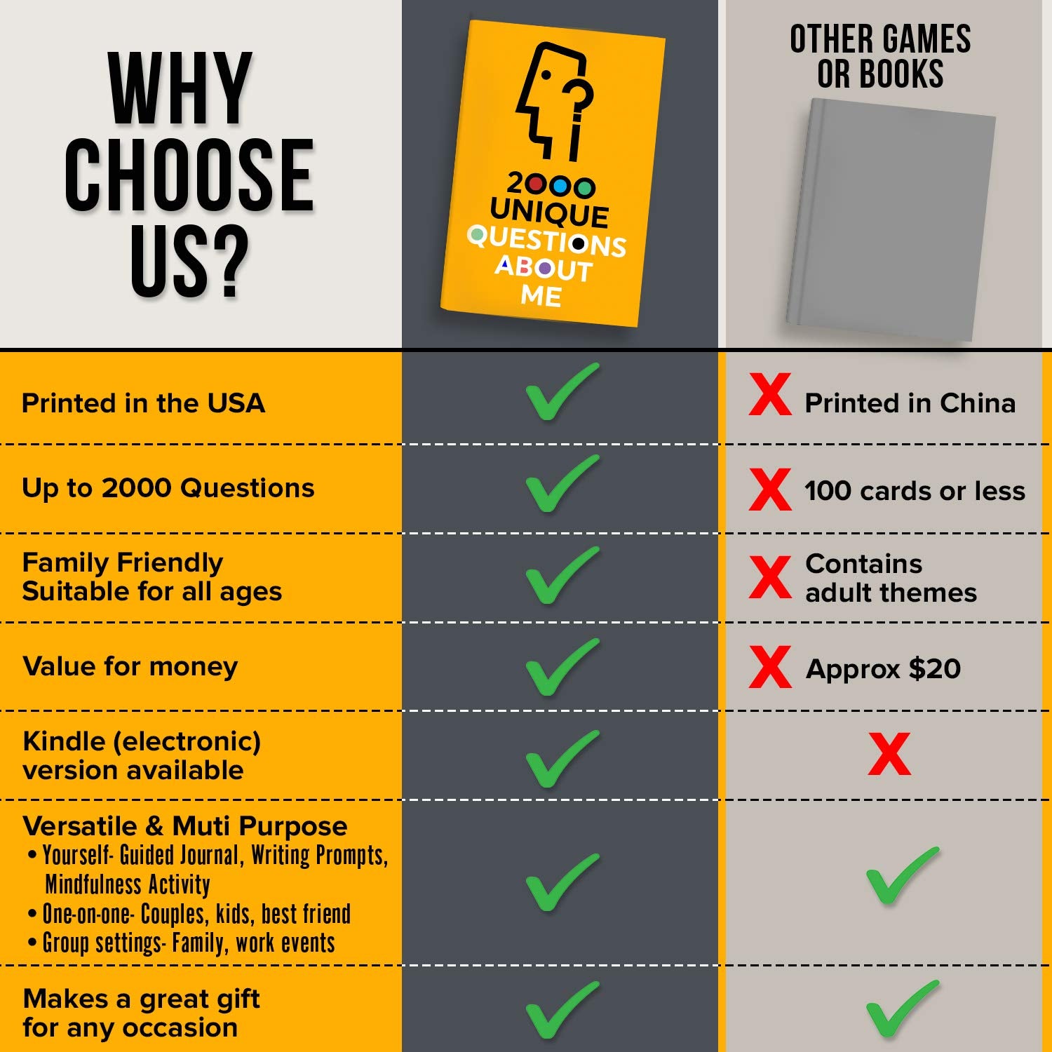 Whether it's during family gatherings, date nights, or quiet moments of self-reflection, this book is your guide to unlocking deeper connections and enjoying fun, meaningful dialogue.