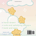 • 50 hand-drawn pages (a mix of cute animals, simple scenery, easy and bold patterns, and motivational/positive quotes)