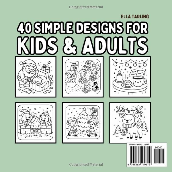 Unwrap 40 festive, one-sided designs in this cute, cozy & bold coloring book for kids, adults & beginners!