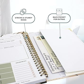 Beautiful Abstract Leaves Design: Planning is so much more fun when using this eye-catching planner with to do list with its lush leaves look, golden spiral, 4 gold corners & green elastic band and a back pocket for extra space