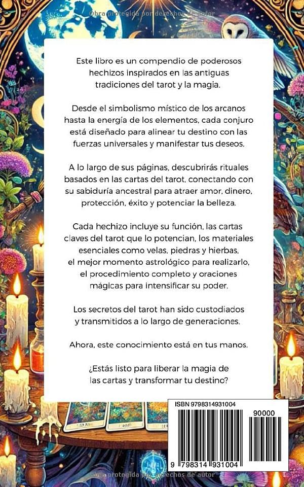 A lo largo de sus páginas, descubrirás rituales basados en las cartas del tarot, conectando con su sabiduría ancestral para atraer amor, dinero, protección, éxito y potenciar la belleza.