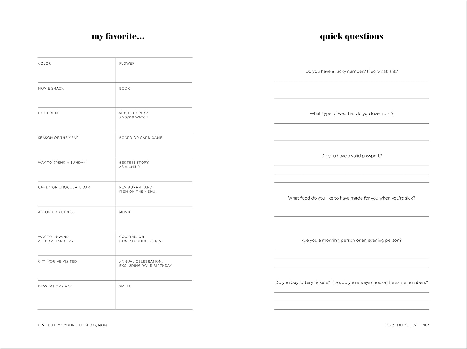 This simple guided journal helps mothers record their life story with over 200 questions.