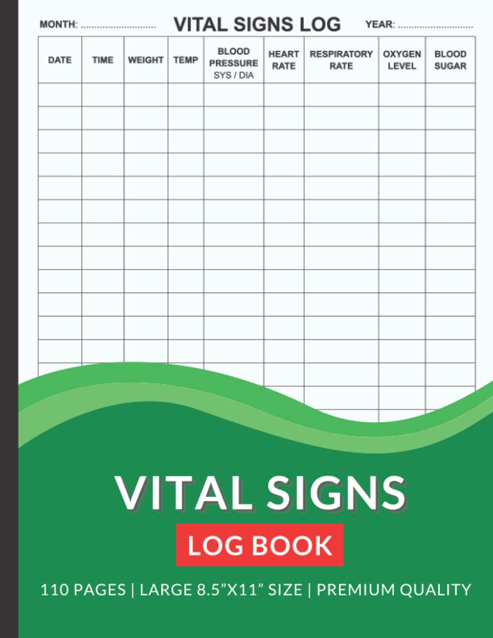 Vital Signs Log Book: Daily personal Health Monitoring Record Log for Blood Pressure, Blood Sugar, Oxygen Level, Heart Pulse Rate