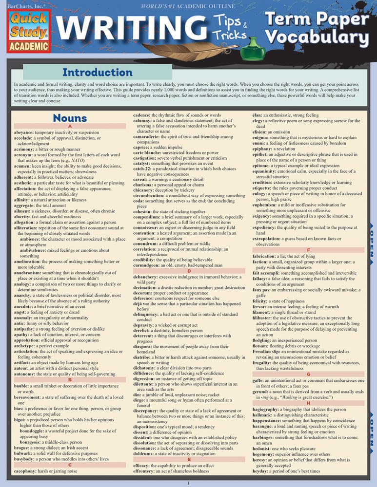 Writing Tips: Term Paper Vocabulary (Quick Study Academic)