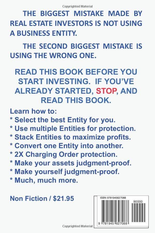 The biggest mistake made by Real Estate Investors is not using a Business Entity.