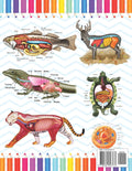 50 unique, easy-to-color illustrations of different animals with their anatomical terminology.